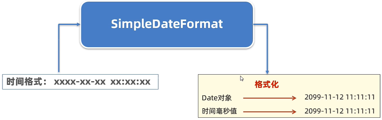 - 代表简单日期格式化,可以用来把日期对象、时间毫秒值格式化成我们想要的形式。