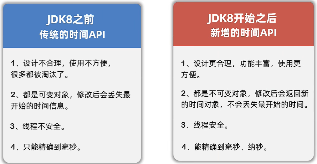 - 传统的Date类,只能精确到毫秒,并且是可变对象。