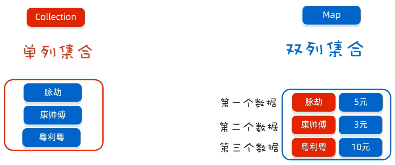 - Collection代表单列集合,每个元素(数据)只包含一个值。