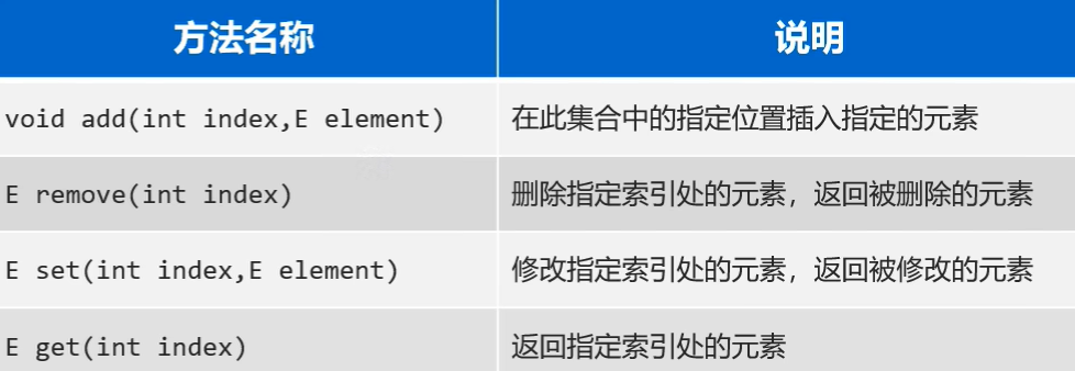 | 1.public boolean add(E e) | 添加元素,添加成功返回true。 |